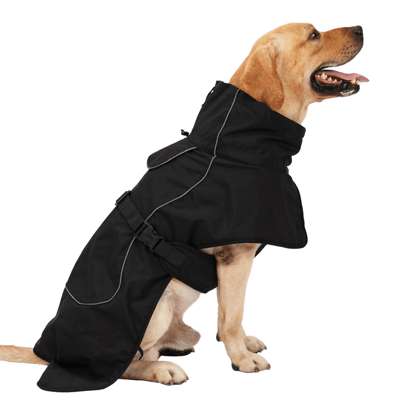 Vyrobena z odolného polyesteru s měkkou fleecovou vnitřní podšívkou, poskytuje teplo a ochranu proti větru, díky čemuž váš pes zůstane v teple i v nejchladnějších dnech. Voděodolný povrch chrání před deštěm či mrholením, zatímco vysoký límec a nastavitelný pásek kolem krku brání pronikání studeného vzduchu.
